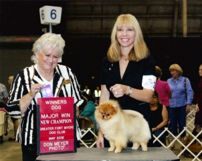 Malcolm (now known as Vegas) was owned and shown in the USA by Jessica Satallante of Jessica's Poms. He finished his championship quickly as a puppy with multiple BOB wins from the classes. He has since gone to live in Russia with Natalia Artemova and Larissa Prokhorova.