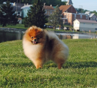 Tarly in the ring at the 2017 American Pomeranian Club National Specialty where he won 1st in American Bred & Best American Bred In Specialty.