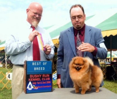 Roxie's sire "Parker" is the top winning and top producing Pomeranian of all time, and with her mother "Meg" he produced five puppies in two litters -- all of which finished!